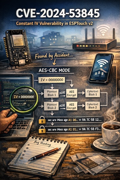 So I started reading through the ESPTouch v2 implementation. Honestly, I wasn’t expecting to find anything. ESPTouch is widely used, battle-tested, and maintained by a reputable vendor. It’s embedded in countless consumer and industrial devices.